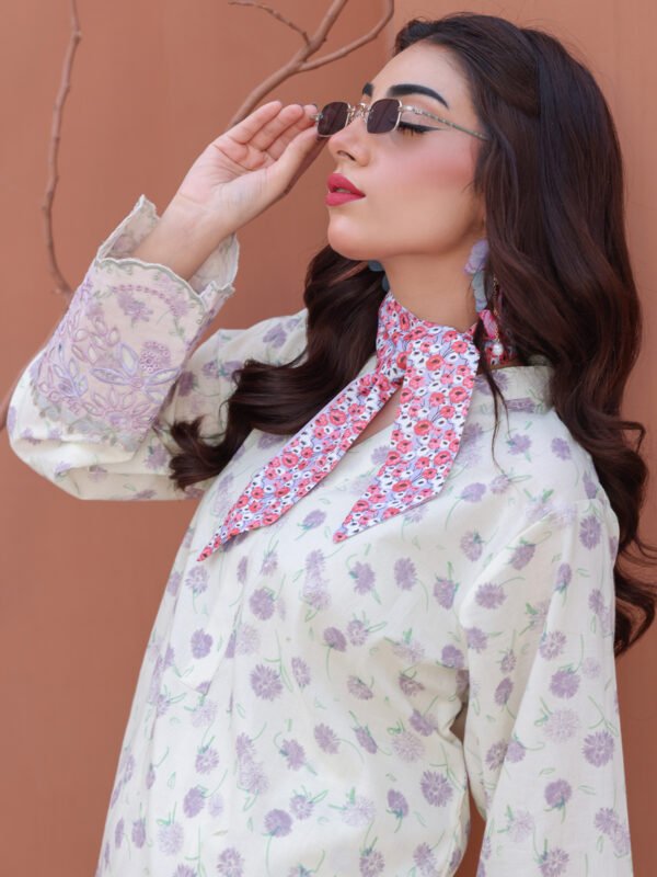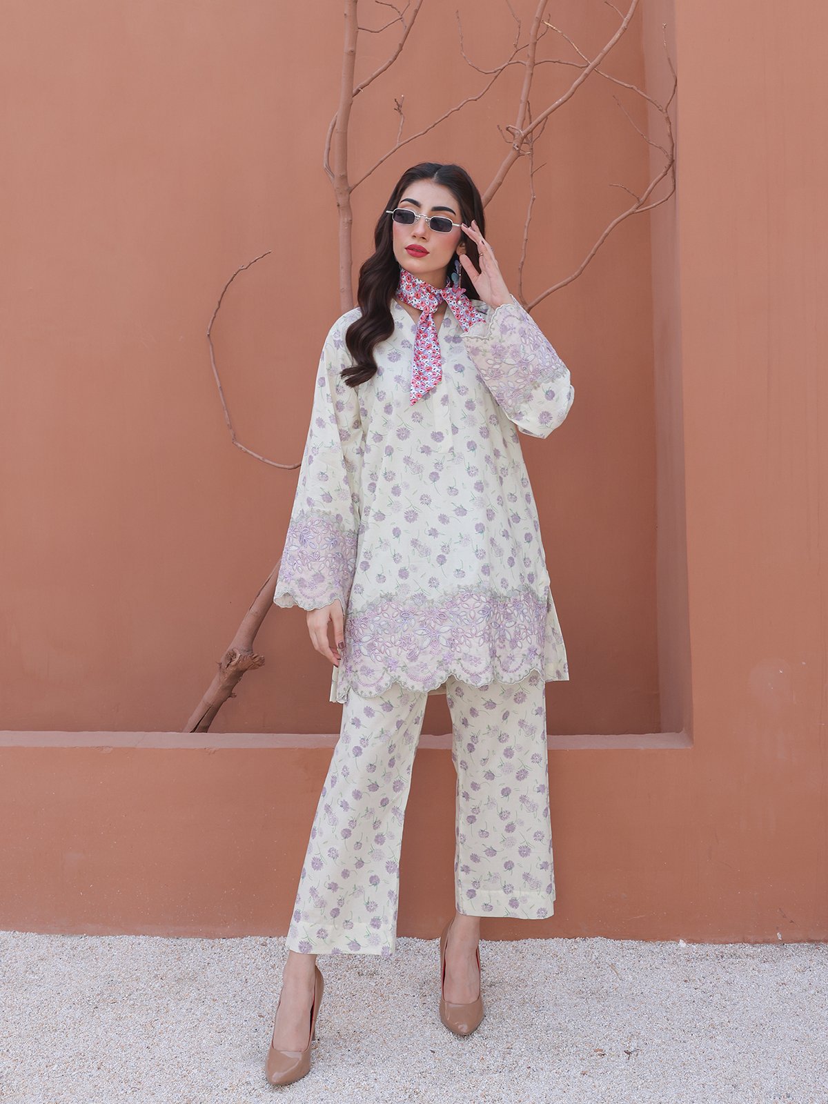 Step into summer with this effortlessly chic 2-piece cord set crafted in breathable lawn fabric, designed to keep you cool and stylish. The soft floral print is elevated with embroidered detailing on the sleeves and border, adding a refined finish to your everyday wardrobe.